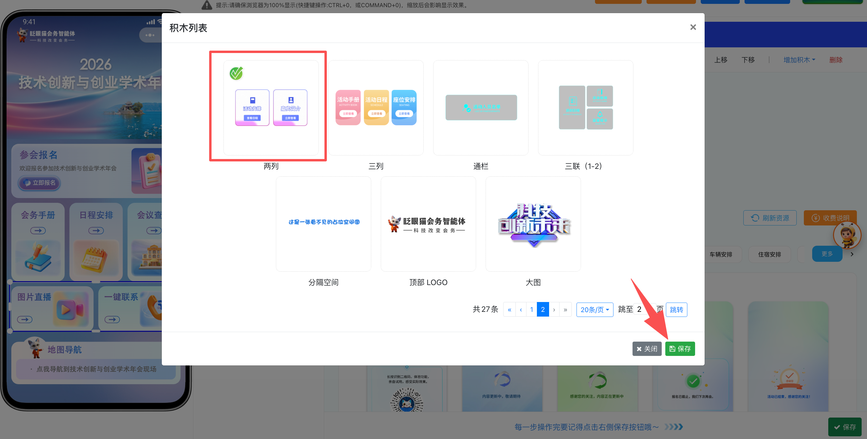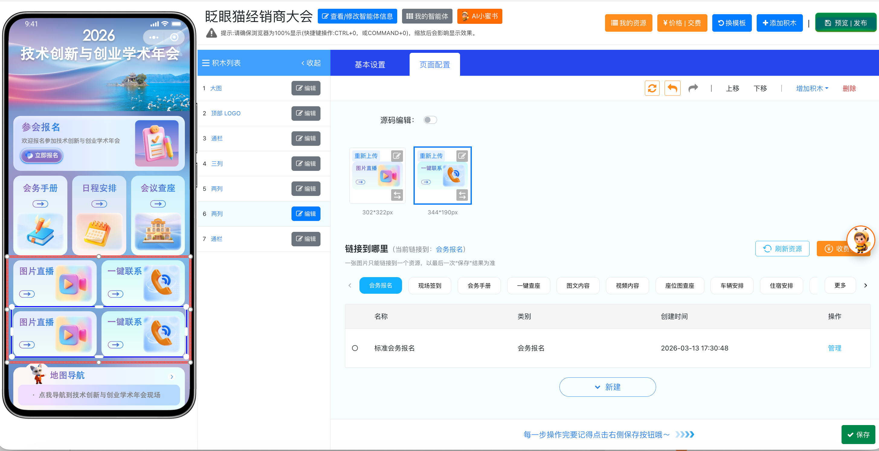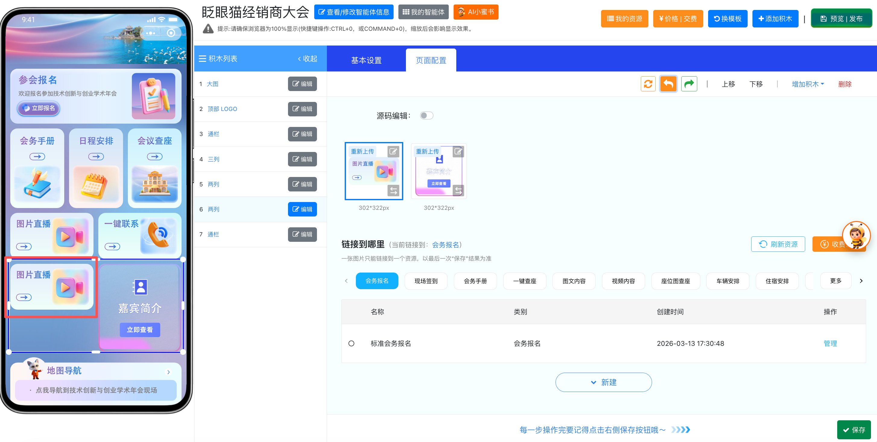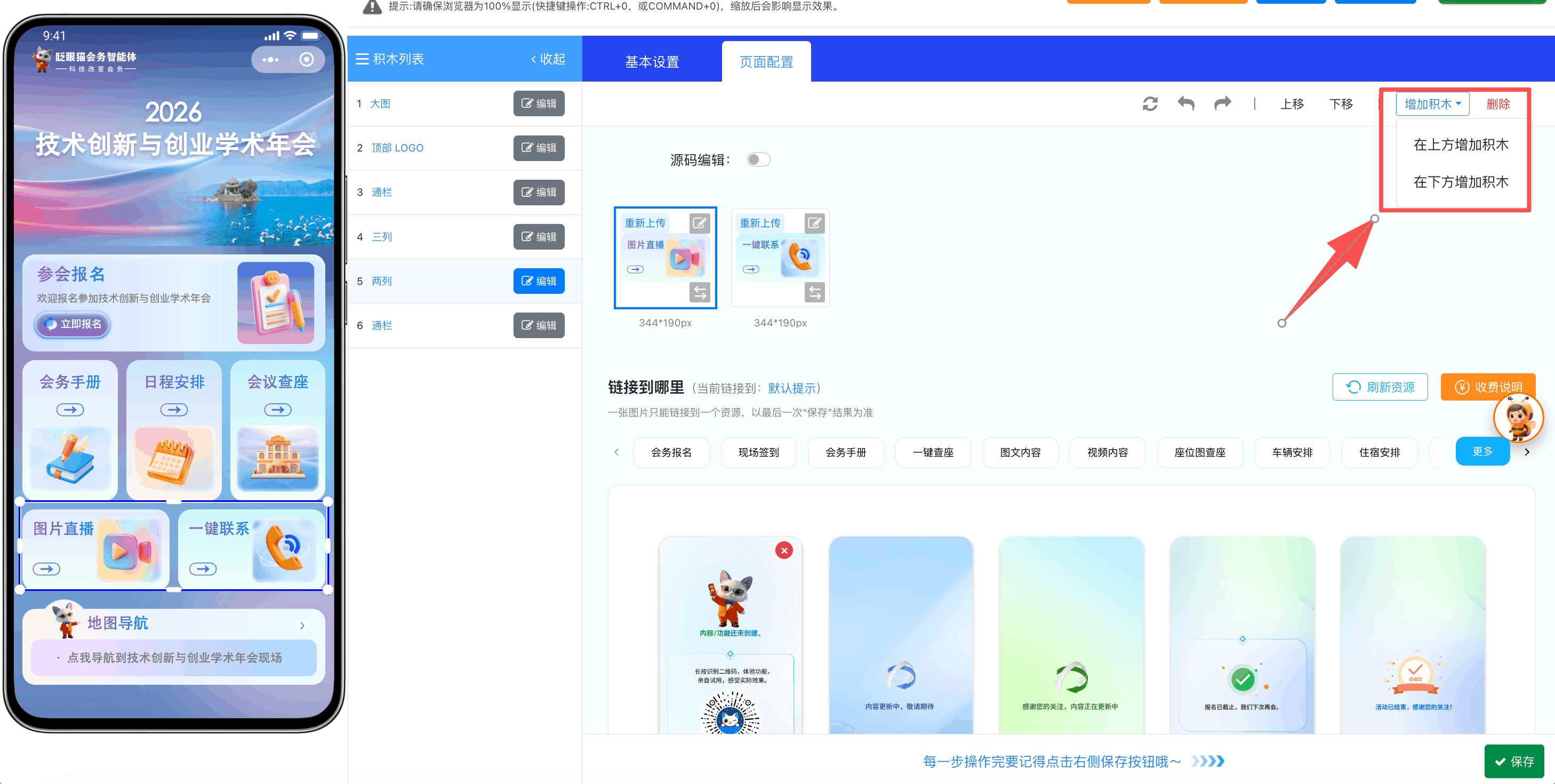 如需添加通栏、三列等其他样式的积木,操作逻辑都是一样的哦~